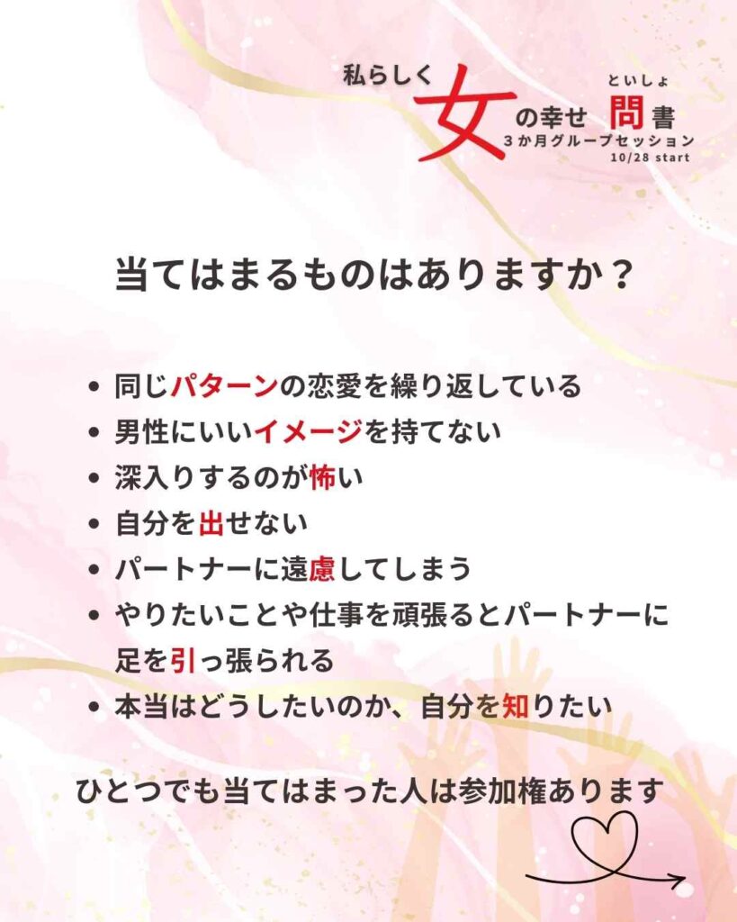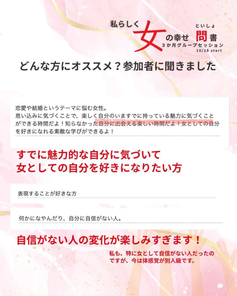 私らしく。女の幸せ問書ワークショップシリーズ詳細